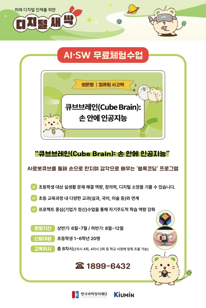 2025³â 6¿ù 14ÀÏ, µðÁöÅлõ½Ï ÇÁ·Î±×·¥ÀÇ ÃÊµî °úÁ¤ Áß 'Å¥ºêºê·¹ÀÎ(Cube Brain): ¼Õ ¾È¿¡ ÀΰøÁö´É' ±³À°À» À§ÇÑ